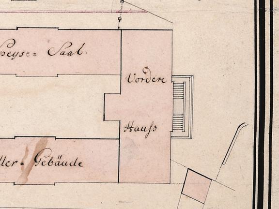 Das Gebäude war gemäß den modernsten Ansprüchen der Zeit konzipiert. Seine etwas abgesonderte Lage im südlichen Teil des Geländes, umgeben von Gärten, garantierte die nötige Ruhe und die hohen Fenster die Versorgung der Innenräume mit frischer Luft und Sonne. Im Inneren war das Haus an das stiftungseigene Frischwassersystem angebunden. Diese Maßnahmen galten als zwingend nötige Voraussetzung, um Ansteckungen zu verhindern.