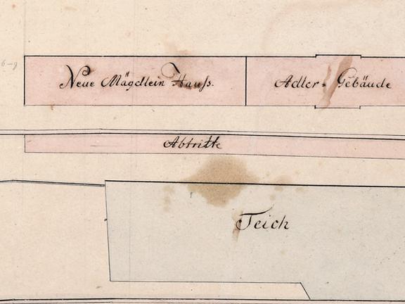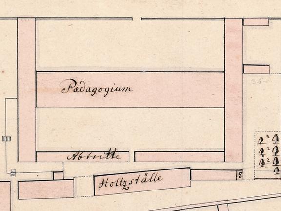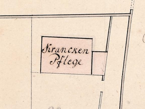 Im Erdgeschoss bewohnte der Aufseher des Krankenhauses einen Raum. Hier befand sich auch der Speiseraum für die nicht bettlägerigen jungen Kranken. Die jungen Kranken waren in den vier Räumen des Obergeschosses und den beiden des Dachgeschosses untergebracht.